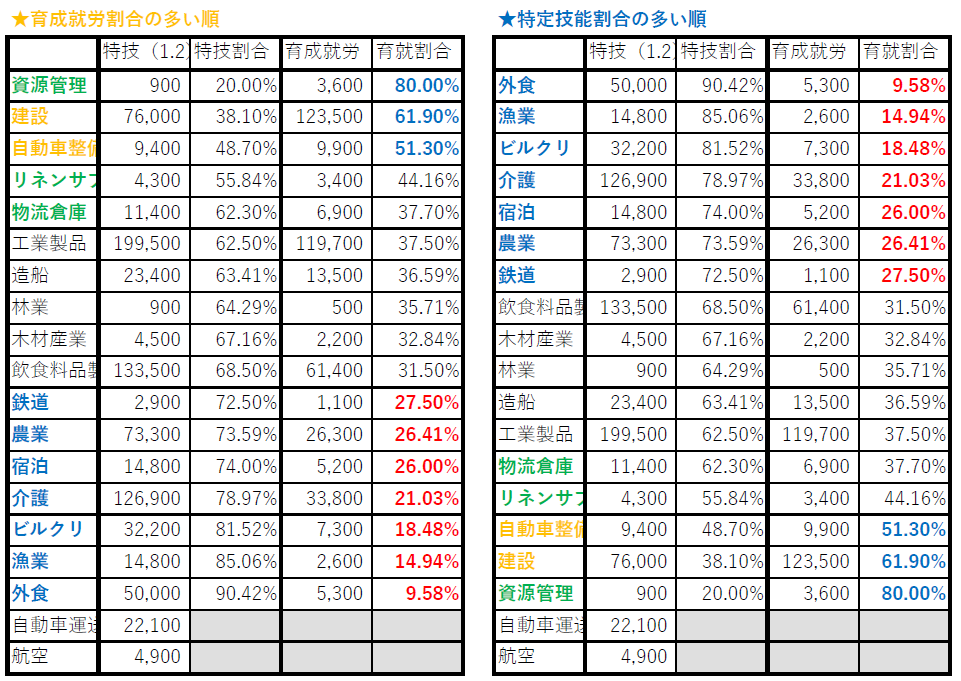 注:技能実習と特定技能ではカテゴライズが異なるため、正確ではありませんが、おおよそででも…と。